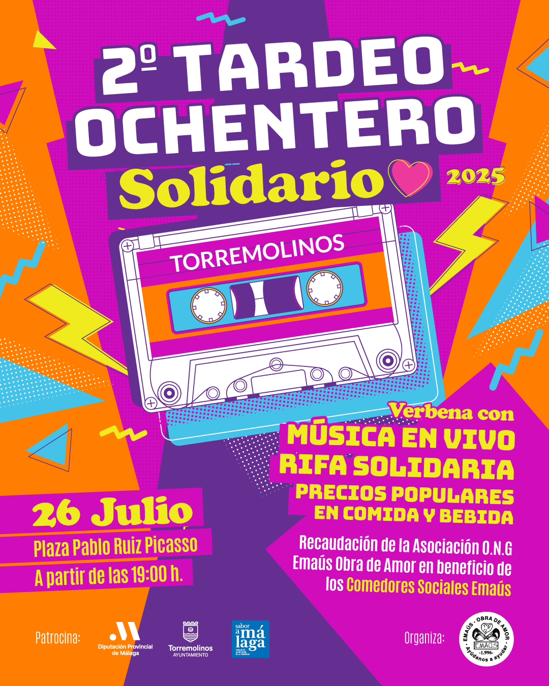 Resumen del 2° Tardeo Ochentero, Verbena Solidaria a beneficio del Comedor Social Emaús Obra de Amor de Torremolinos