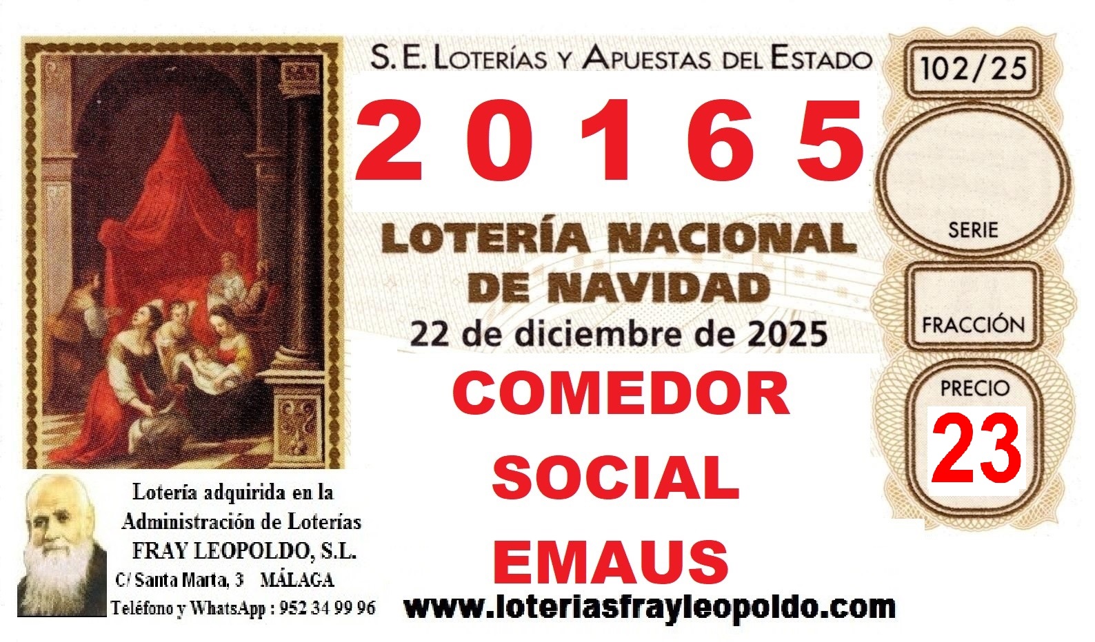 Como es tradición cada año, jugamos con el 20165. Ya puedes adquirir tu décimo, o si lo prefieres un billete entero. Contacta con nosotros en el 691847792, no te quedes sin el tuyo. Corre que vuelan!!!